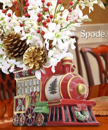 Created by the artists at Spode, exclusively designed for Mancuso's Florist,The first of the series, hand painted keepsake train filled with holiday greenery. Completed with a gift box for safe keeping. Measures 8.5" H x 5.5" W.