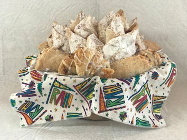 The Pastry Basket from Mancuso's Florist is a celebration of confectionery delights, certain to elevate any gathering or offer a moment of indulgent respite. Nestled within a wicker basket wrapped in a fun, vibrant "RAH!" celebratory fabric lies a tempting array of pastries that are as visually appealing as they are delicious.